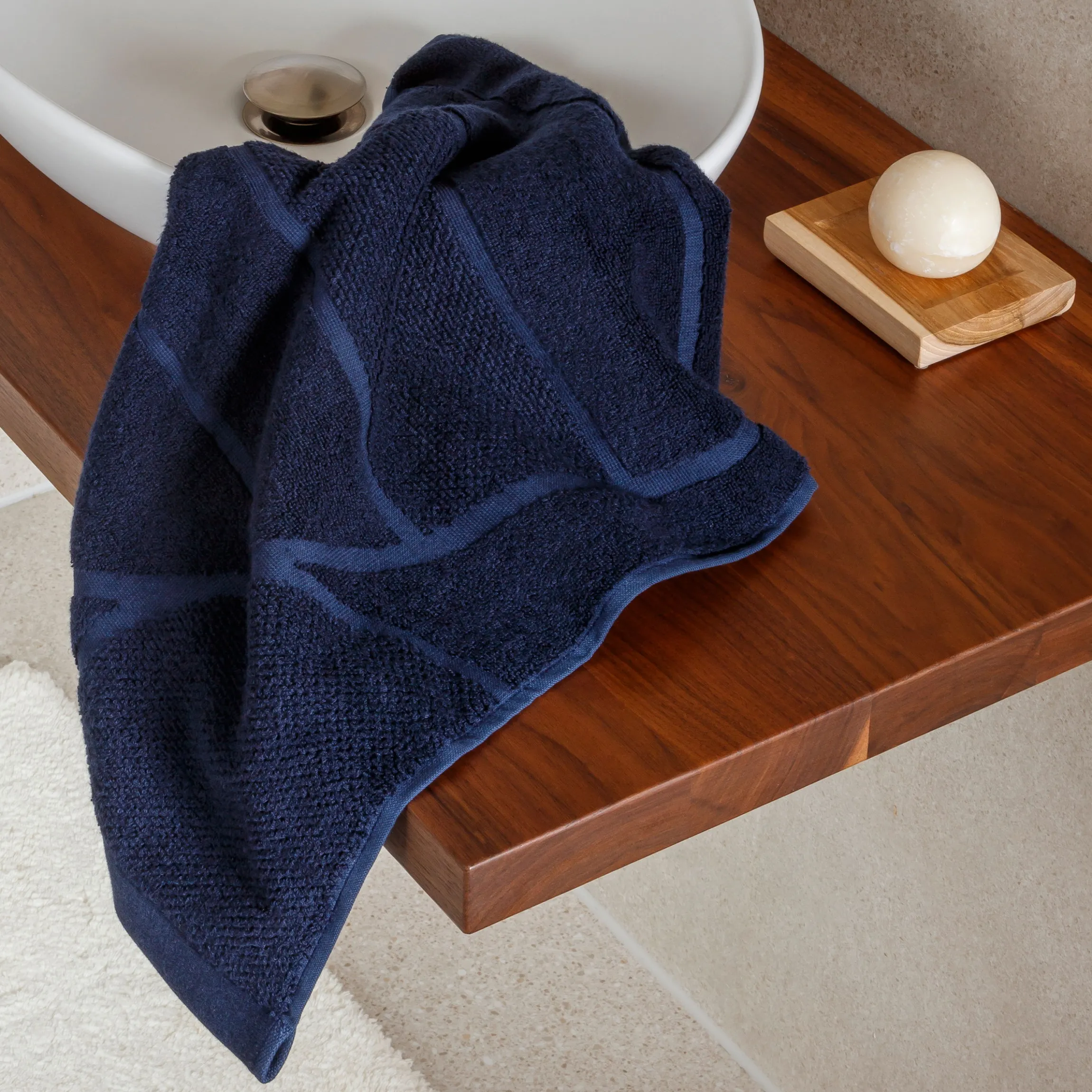 - Ergänzt von getufteter Badematte mit hohem Flor aus 100% Baumwolle