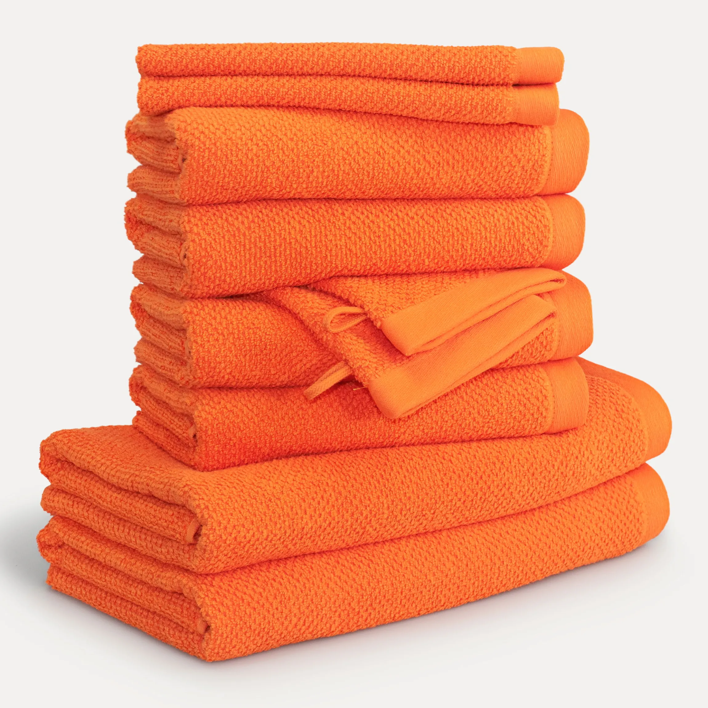 Das Set umfasst eine sorgfältig zusammengestellte Auswahl an 2x Waschhandschuhen, 2x Gäste-, 4x Hand- und 2x Duschtüchern – jeweils in harmonisch aufeinander abgestimmten Farben. Dank der hohen Saugfähigkeit und des angenehmen Gewichts liegen die Tücher weich und griffig in der Hand.
