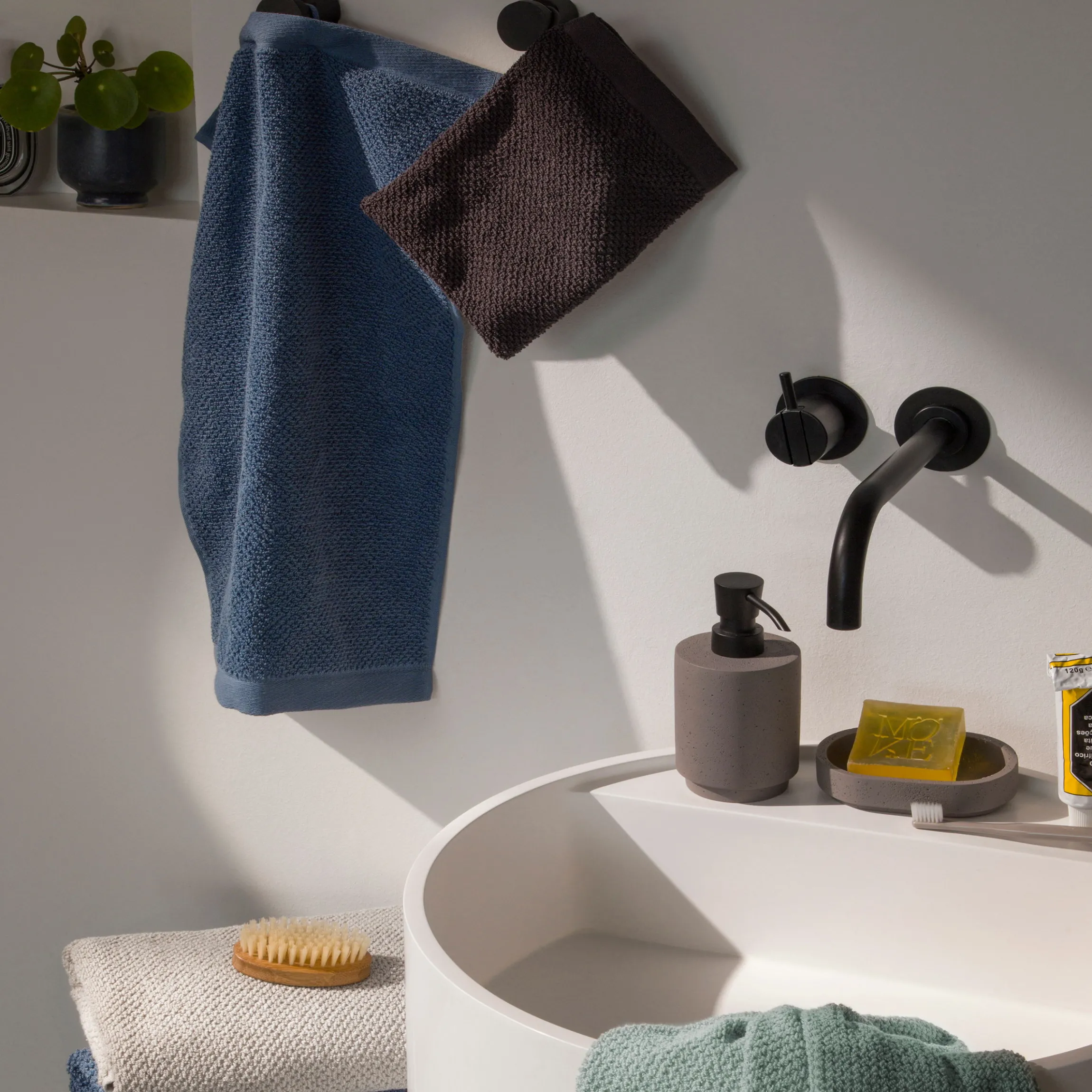 Das Set umfasst eine sorgfältig zusammengestellte Auswahl an 2x Waschhandschuhen, 2x Gäste-, 4x Hand- und 2x Duschtüchern – jeweils in harmonisch aufeinander abgestimmten Farben. Dank der hohen Saugfähigkeit und des angenehmen Gewichts liegen die Tücher weich und griffig in der Hand.