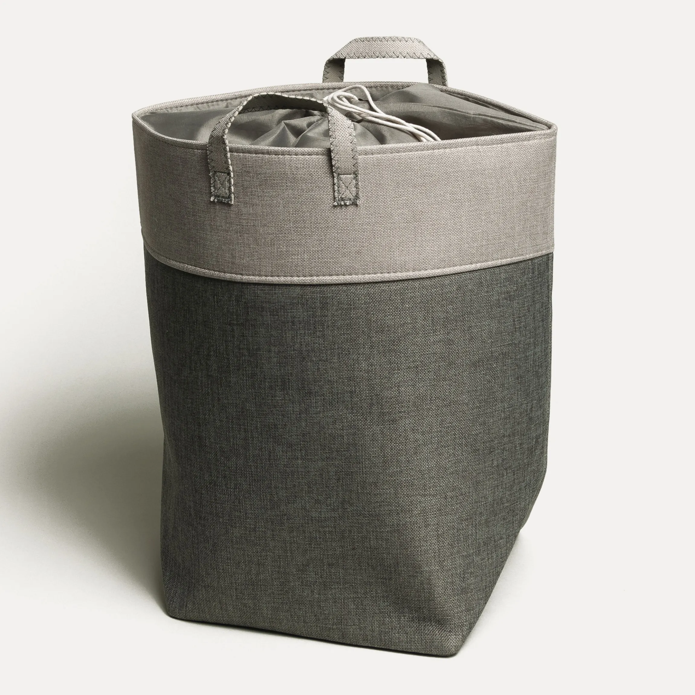 - Hoher Wäschekorb in zwei Grautönen mit Abdeckung zum Schnüren