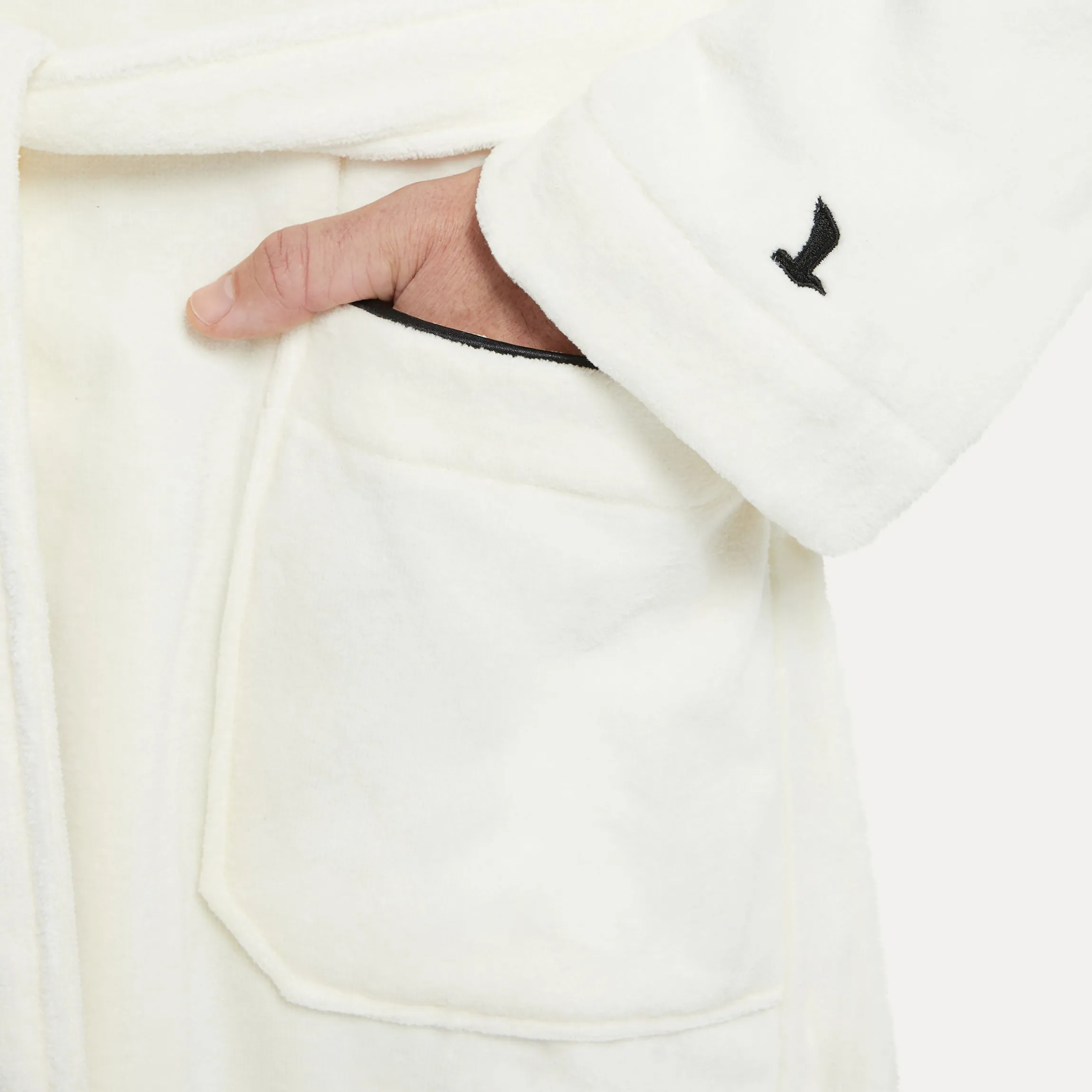 Bequem und gleichzeitig edel, das ist die Kollektion möve HOMEWEAR, zu der auch der flauschige Schalkragenmantel gehört. Dank des hochwertigen Baumwollvelours ist er kuschelweich und damit der ideale Begleiter bei kühlen Temperaturen – sei es nach dem Bad oder einfach für einen gemütlichen Start in den Tag. Der Bademantel mit Schalkragen ist in mehreren zeitlosen Farben erhältlich, die den eleganten Schnitt unterstreichen. Liebevolle Details sind die feinen Paspeln und das aufgestickte Markenlogo am Ärmel.