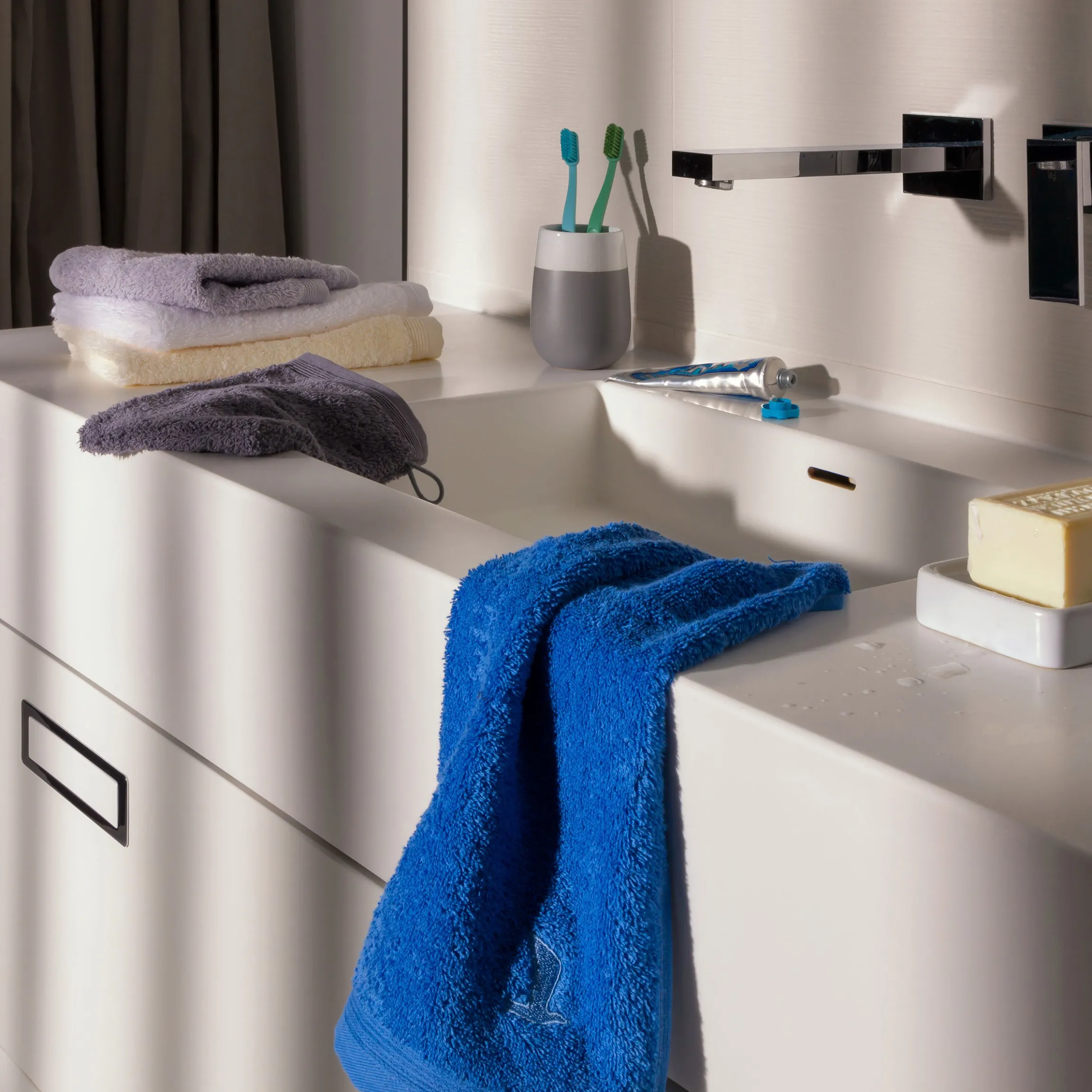 | Size | Badetuch 100 x 160 cm, Duschtuch 80 x 150 cm, Gästetuch 30 x 50 cm, Handtuch 50 x 100 cm, Handtuch 60 x 110 cm, Seiftuch 30 x 30 cm, Waschhandschuh 20 x 15 cm |