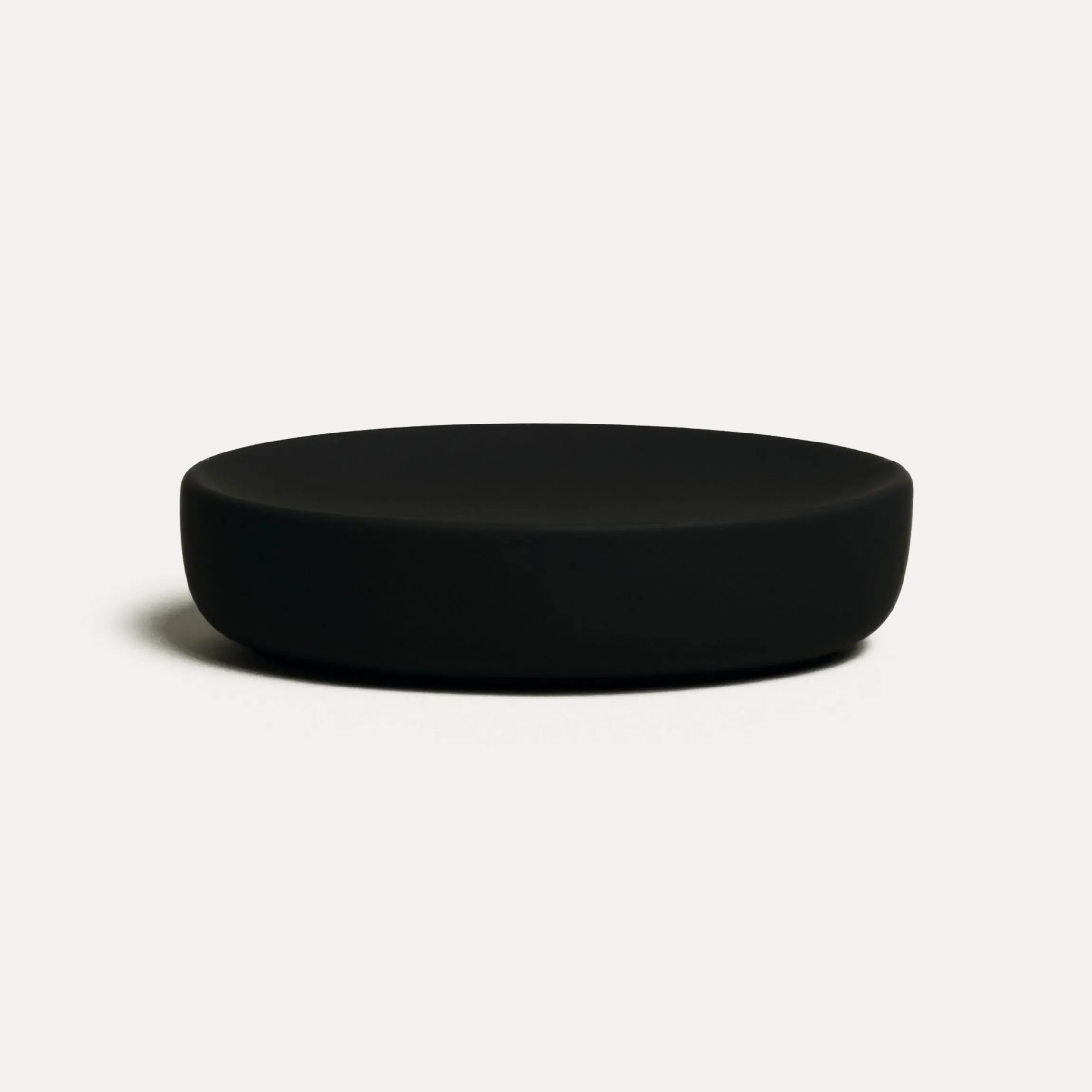Bringen Sie mit der sanft abgerundeten Kollektion MÖVE BLACK VELVET in sattem Schwarz einen Hauch von Coolness in Ihr Bad! Die formschöne ovale Seifenschale ist ideal geeignet, um feste Seifen sicher und trocken aufzubewahren. Egal, ob im Gäste-WC oder im Badezimmer – die Seifenschale in matter Optik ist nicht nur praktisch, sondern auch optisch ein schöner Hingucker. Für den Fall, dass Sie keine feste Seife verwenden, lässt sich die Schale auch prima zur Ablage für kleine Dinge wie Haarklemmen, Ringe oder Ohrringe umfunktionieren.