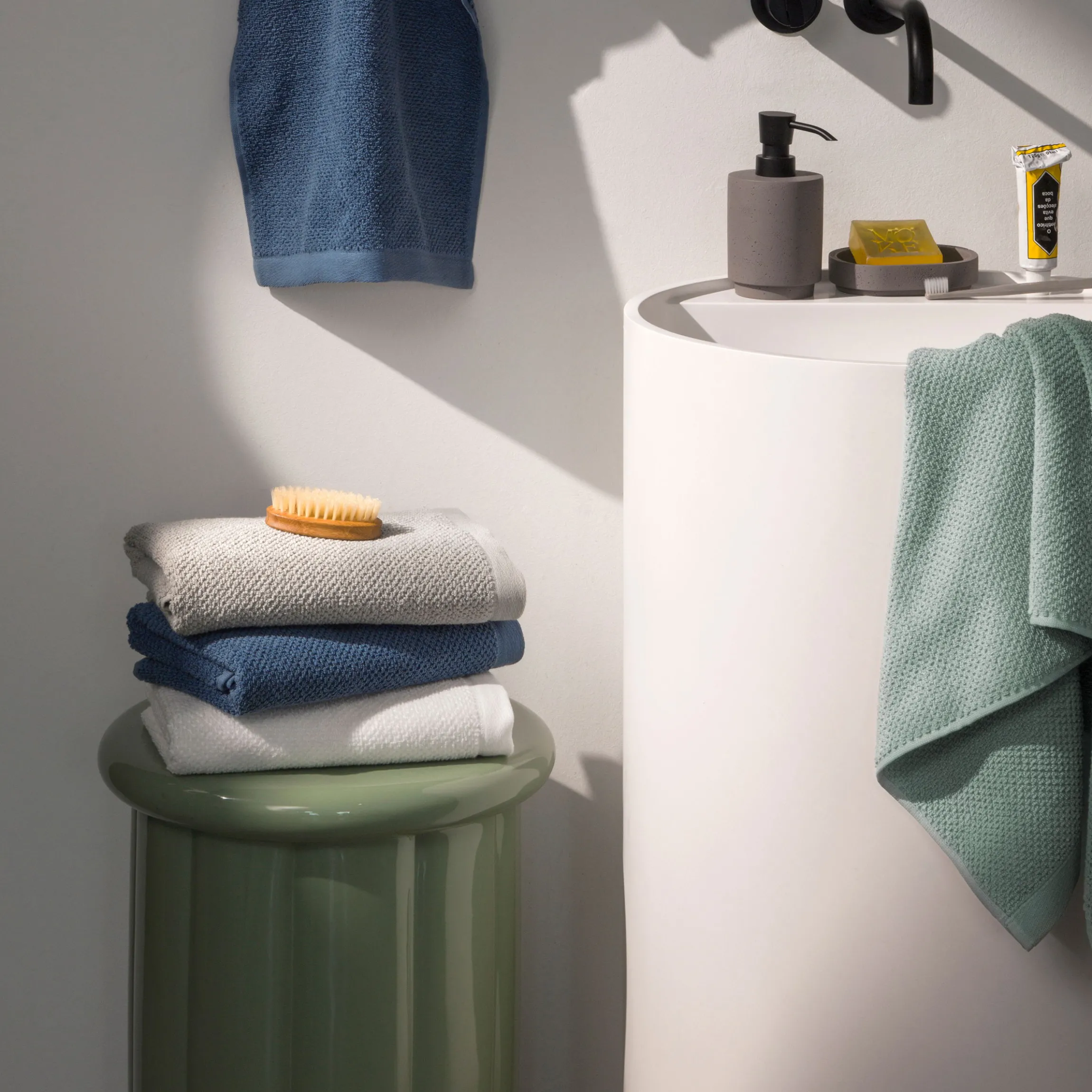 - Farbenfrohe Duschtücher mit Perlstruktur