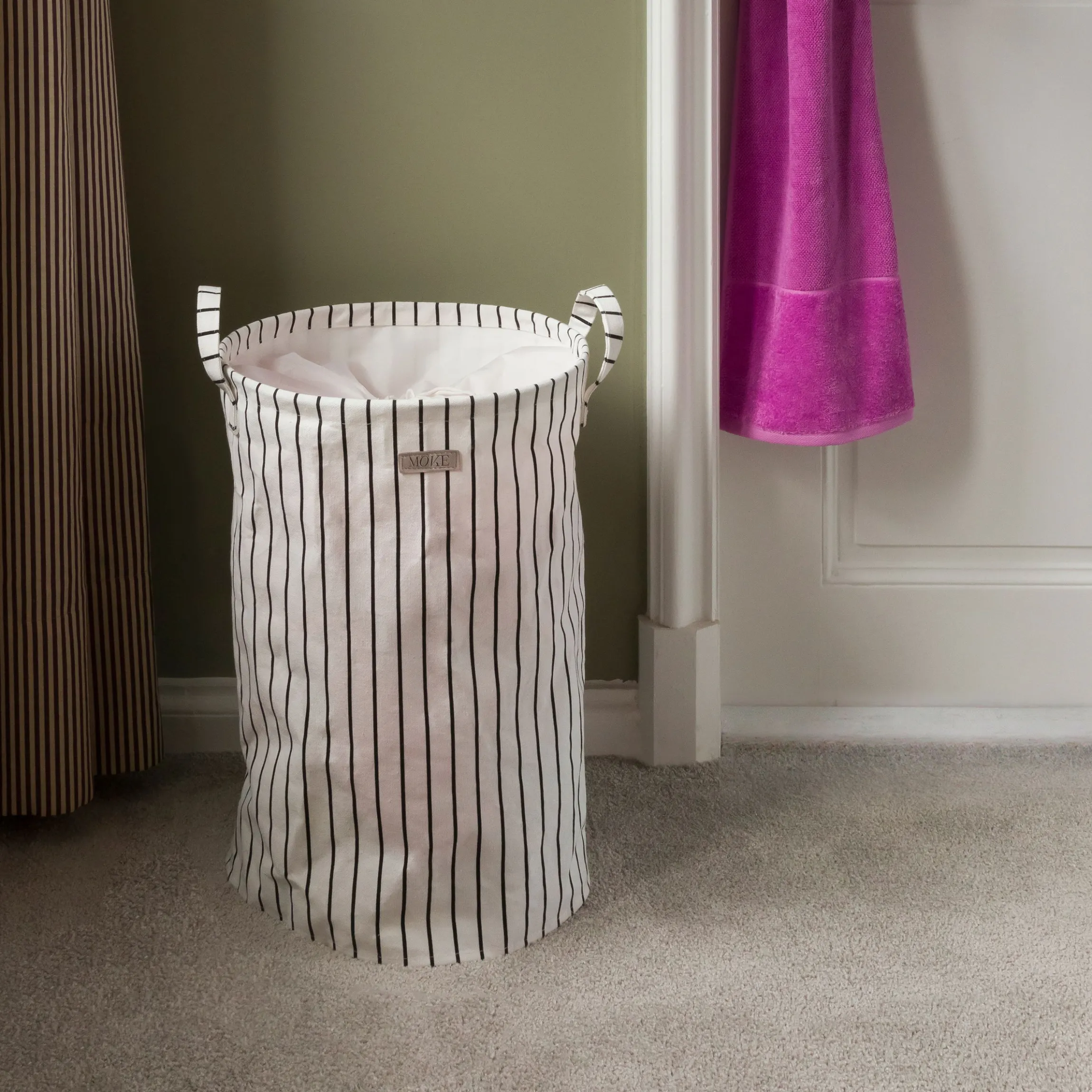 Moderner Wäschekorb aus dem robusten Canvas Stoff, der an Segeltücher erinnert. Auch die Farbgebung fügt sich ins maritime Bild ein. Dank der seitlich angebrachten Griffe lässt er sich problemlos transportieren. Für einen aufgeräumten Look verschnürt man einfach die Abdeckung. Mit den Maßen 35 x 50 cm hält er viel Platz bereit.