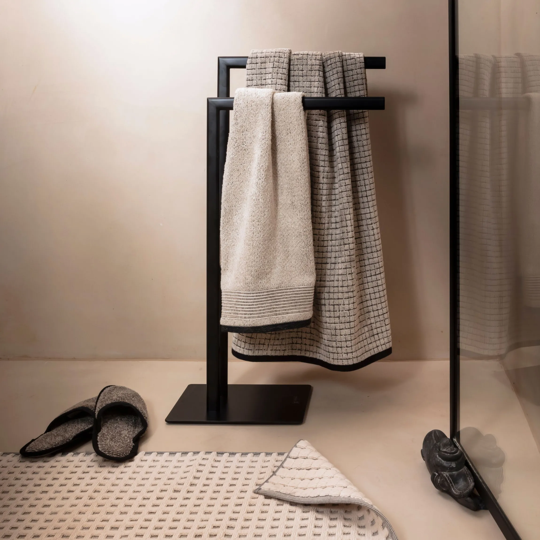 - Zeitloser Badteppich in markanter Kästchenstruktur aus kunstvoll verwobenem Garn