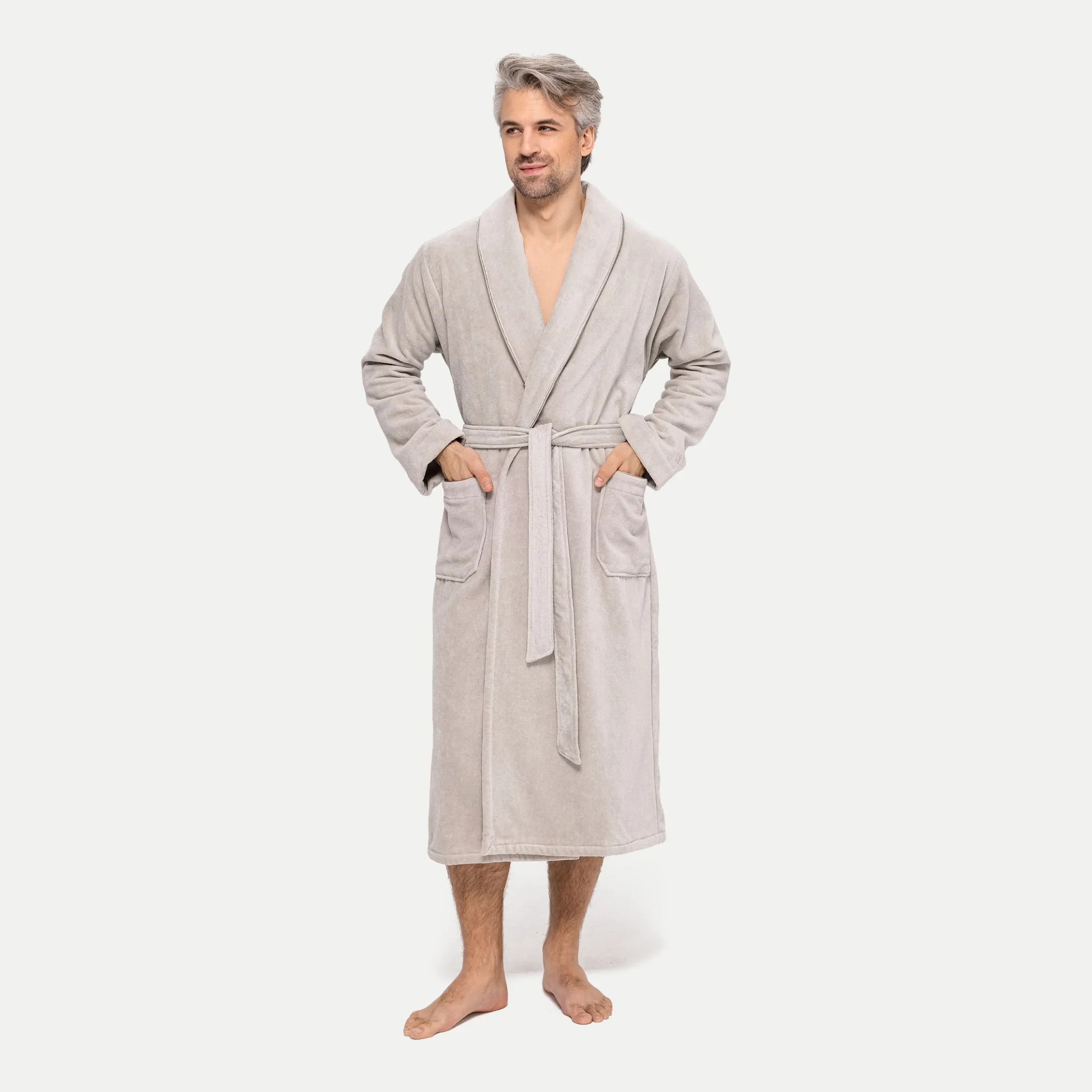Bequem und gleichzeitig edel, das ist die Kollektion möve HOMEWEAR, zu der auch der flauschige Schalkragenmantel gehört. Dank des hochwertigen Baumwollvelours ist er kuschelweich und damit der ideale Begleiter bei kühlen Temperaturen – sei es nach dem Bad oder einfach für einen gemütlichen Start in den Tag. Der Bademantel mit Schalkragen ist in mehreren zeitlosen Farben erhältlich, die den eleganten Schnitt unterstreichen. Liebevolle Details sind die feinen Paspeln und das aufgestickte Markenlogo am Ärmel.