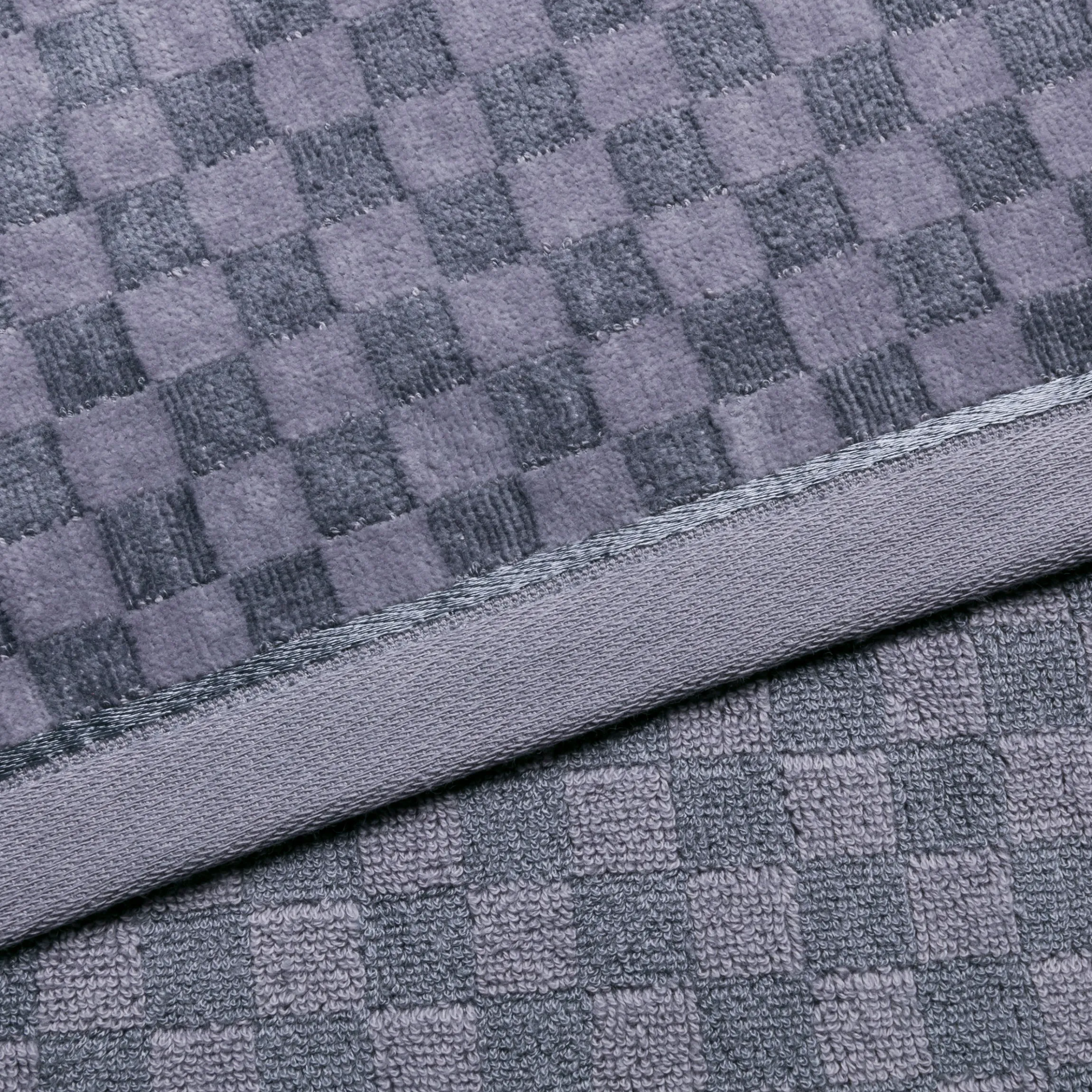 Die Handtücher aus Baumwolle sowie aus Bambus gewonnener Viskose haben eine unglaublich weiche Haptik und schimmern edel. Das monochrome Spiel der Strukturen verleiht Eleganz.