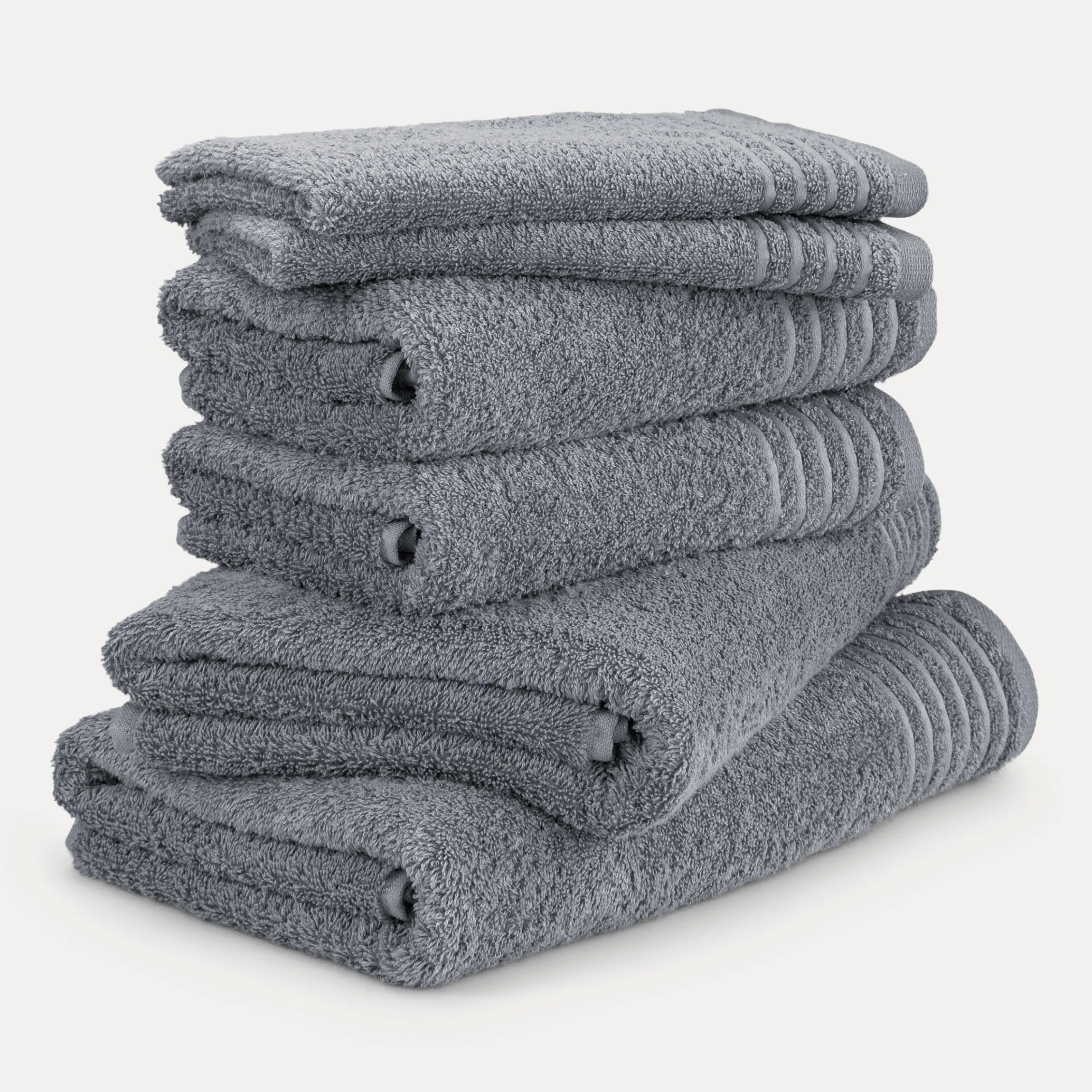 Das 6er Set – bestehend aus Gäste-, Hand- und Duschtüchern – der Kollektion MÖVE New Classic wird aus besonders hochwertigem Baumwollfrottier gefertigt. Durch das attraktive Gewicht von 480 g/m² sind die Tücher sehr voluminös und haben einen besonders weichen und flauschigen Griff. Die Ton-in-Ton Streifen wirken als schönes Detail und tragen zur luxuriösen Optik bei. Dank des hochwertigen Kordelaufhängers lassen sich die Artikel problemlos an jedem herkömmlichen Haken befestigen.