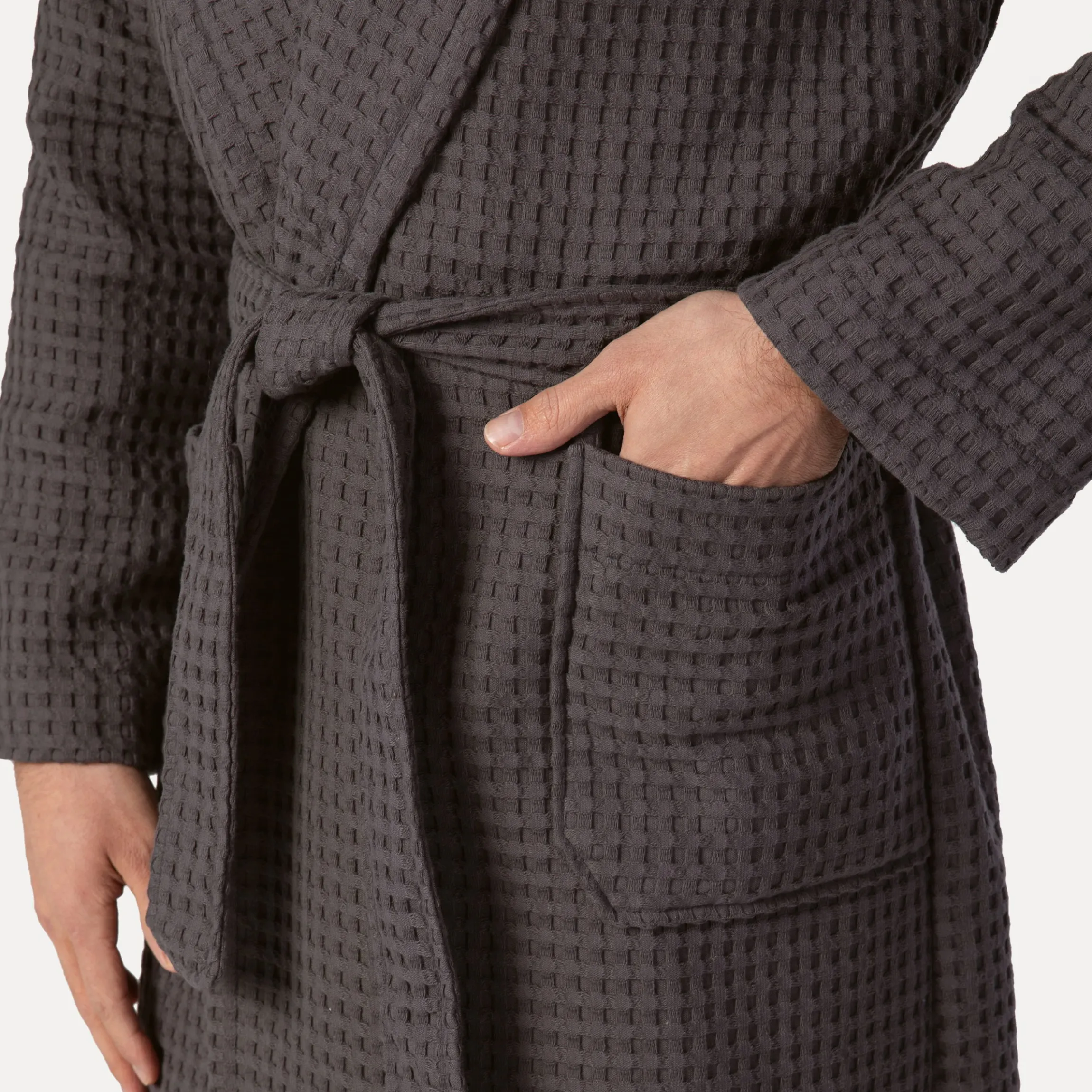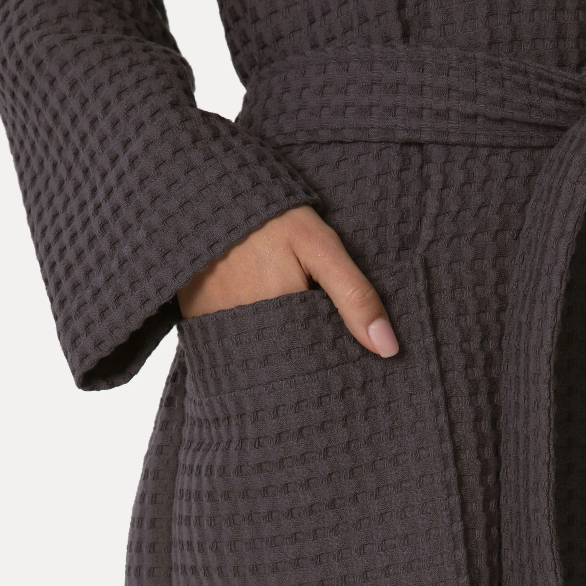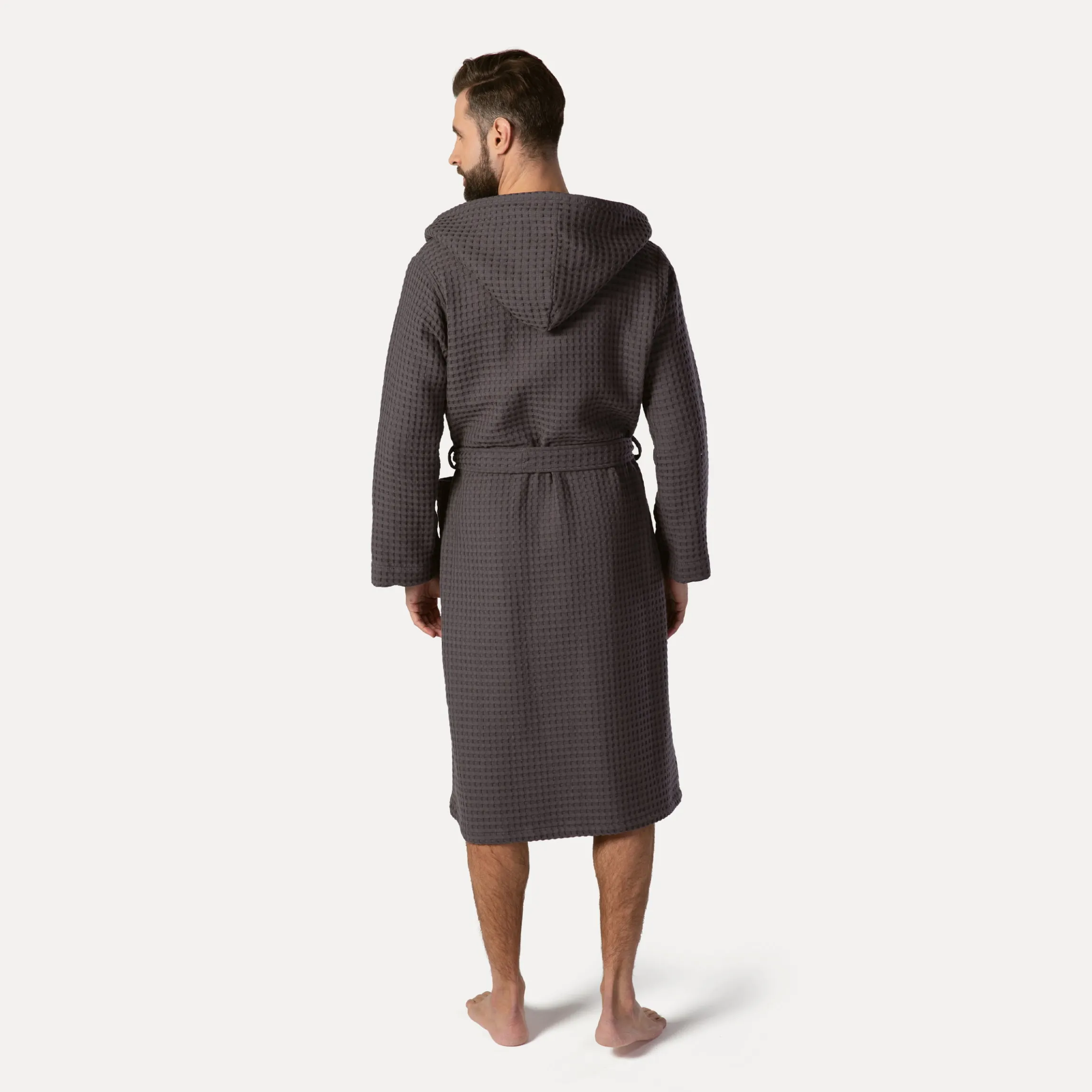 - Klassisch geschnittener Kapuzen-Bademantel mit strukturierter Waffelpiquée-Oberfläche