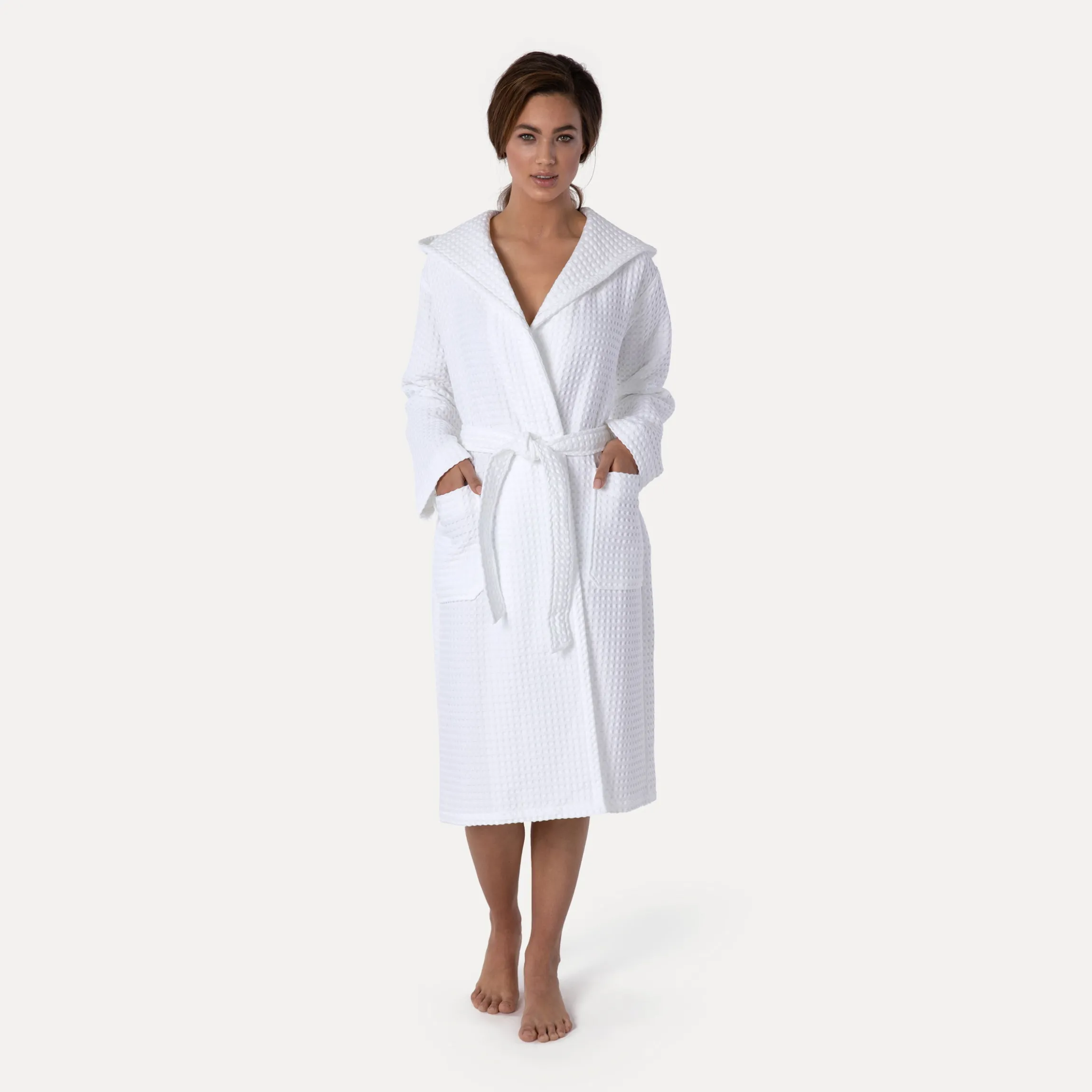 - Klassisch geschnittener Kapuzen-Bademantel mit strukturierter Waffelpiquée-Oberfläche