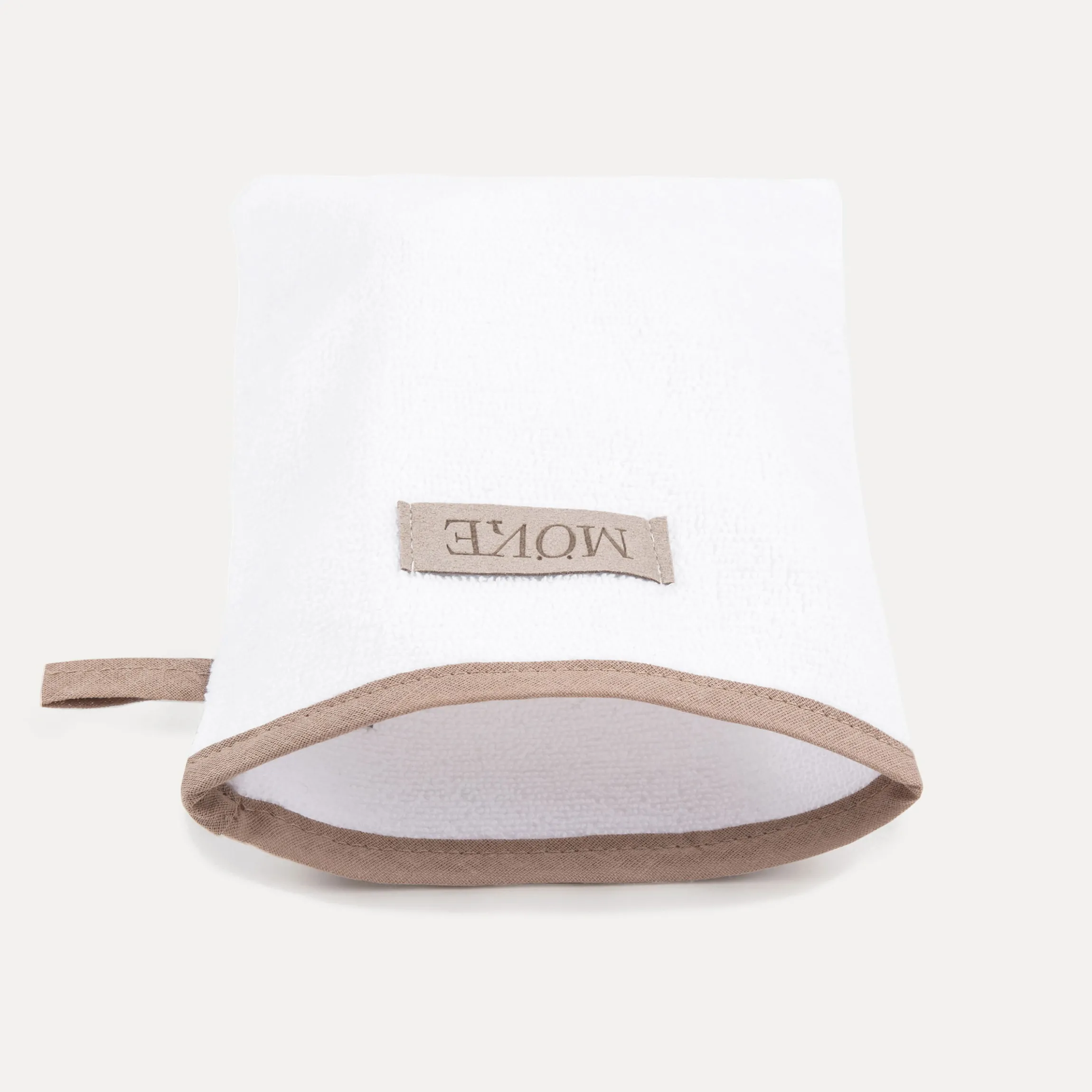 - Praktischer Waschhandschuh aus weißem Baumwollfrottier