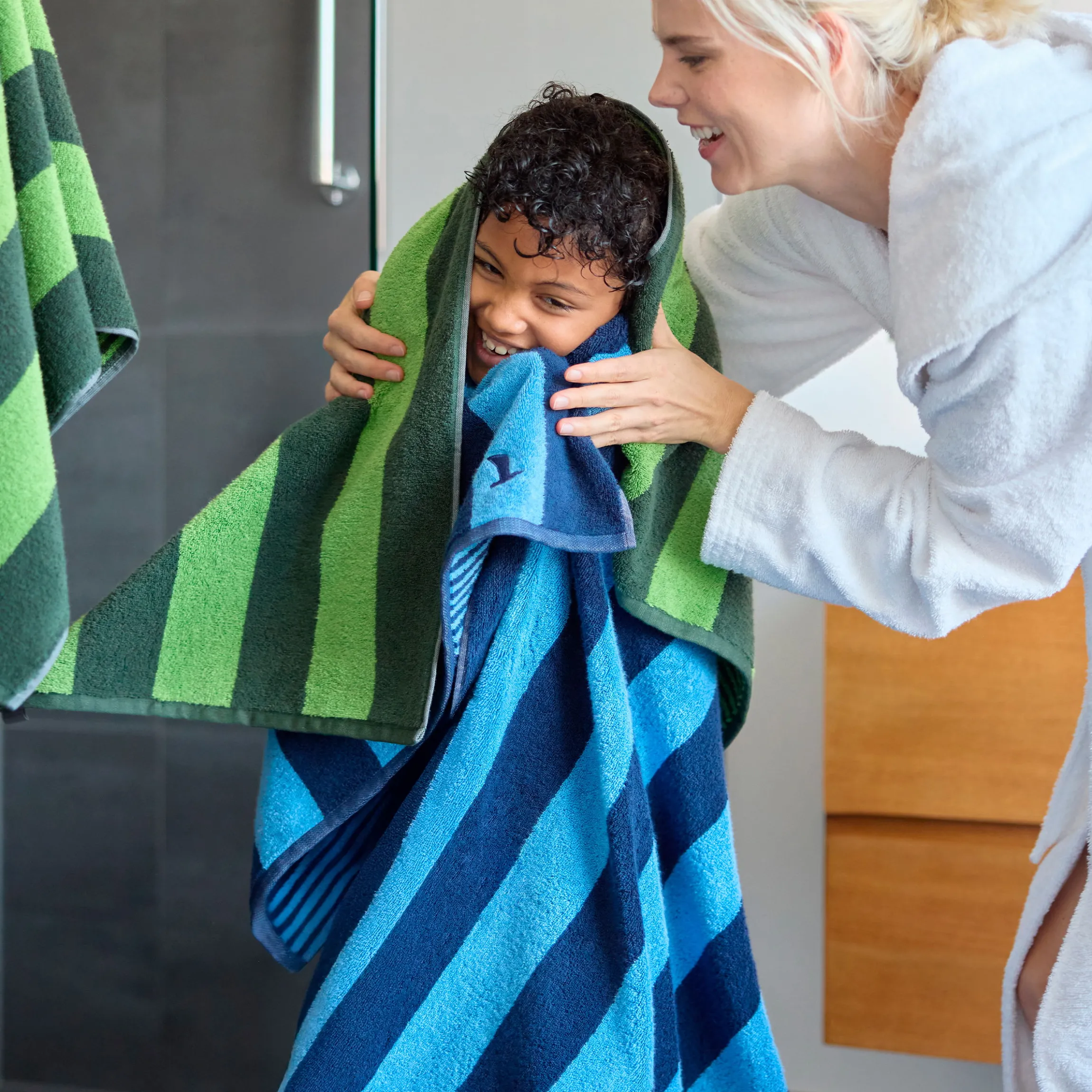 - Extraweiches und voluminöses Doubleface – Duschtuch im Streifendesign