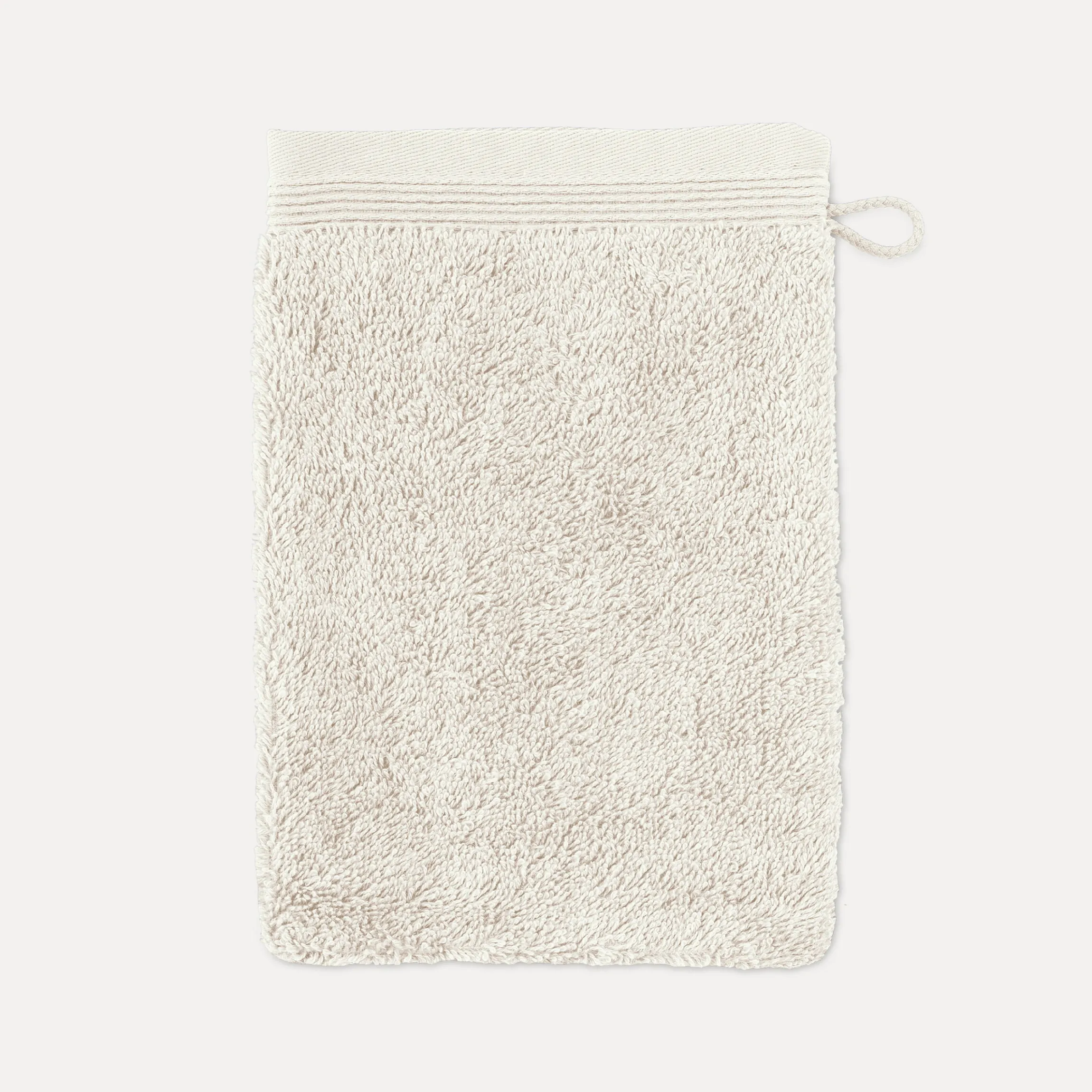 - Extraweicher und voluminöser Waschhandschuh mit dezenter Biesenbordüre