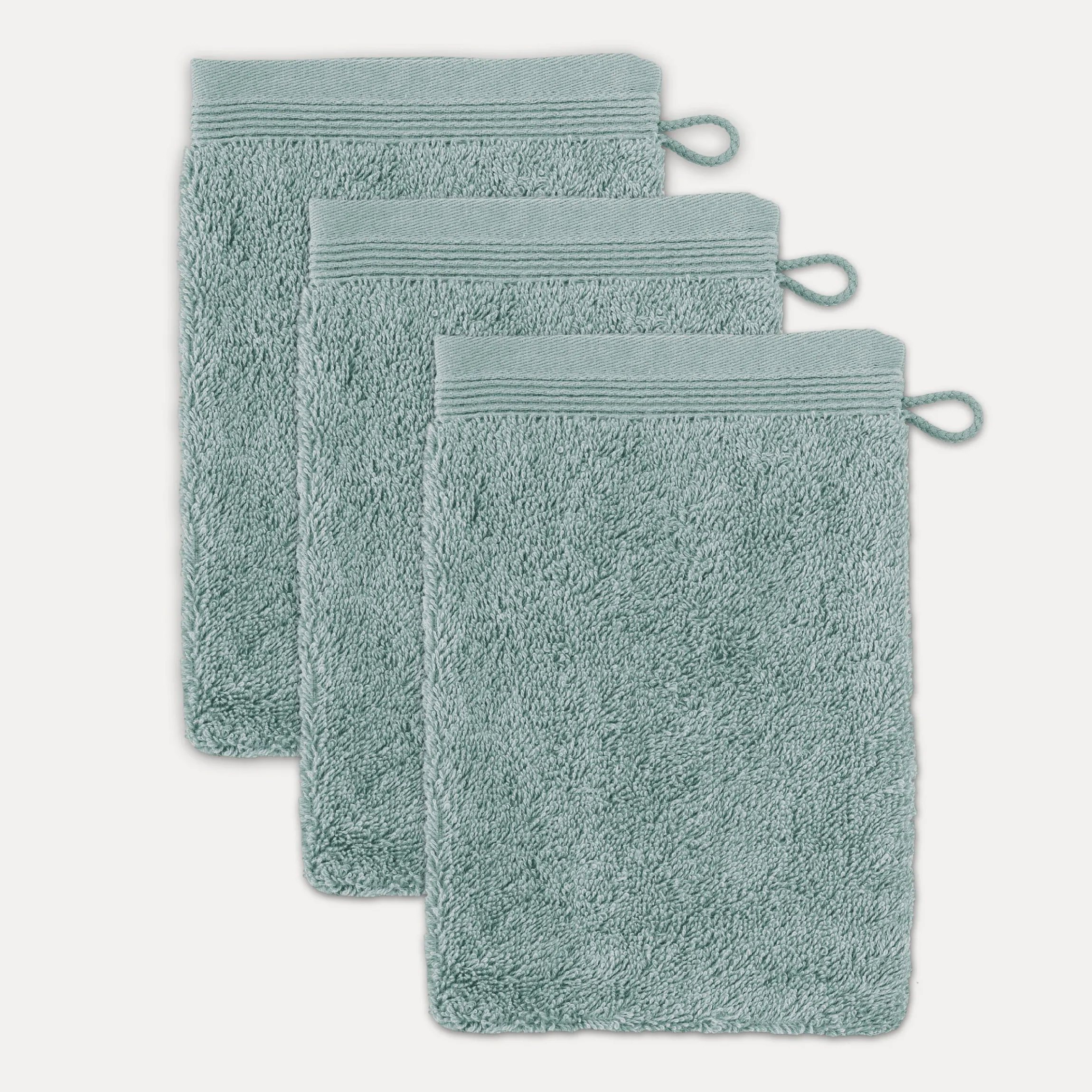 - Extraweicher und voluminöser Waschhandschuh mit dezenter Biesenbordüre