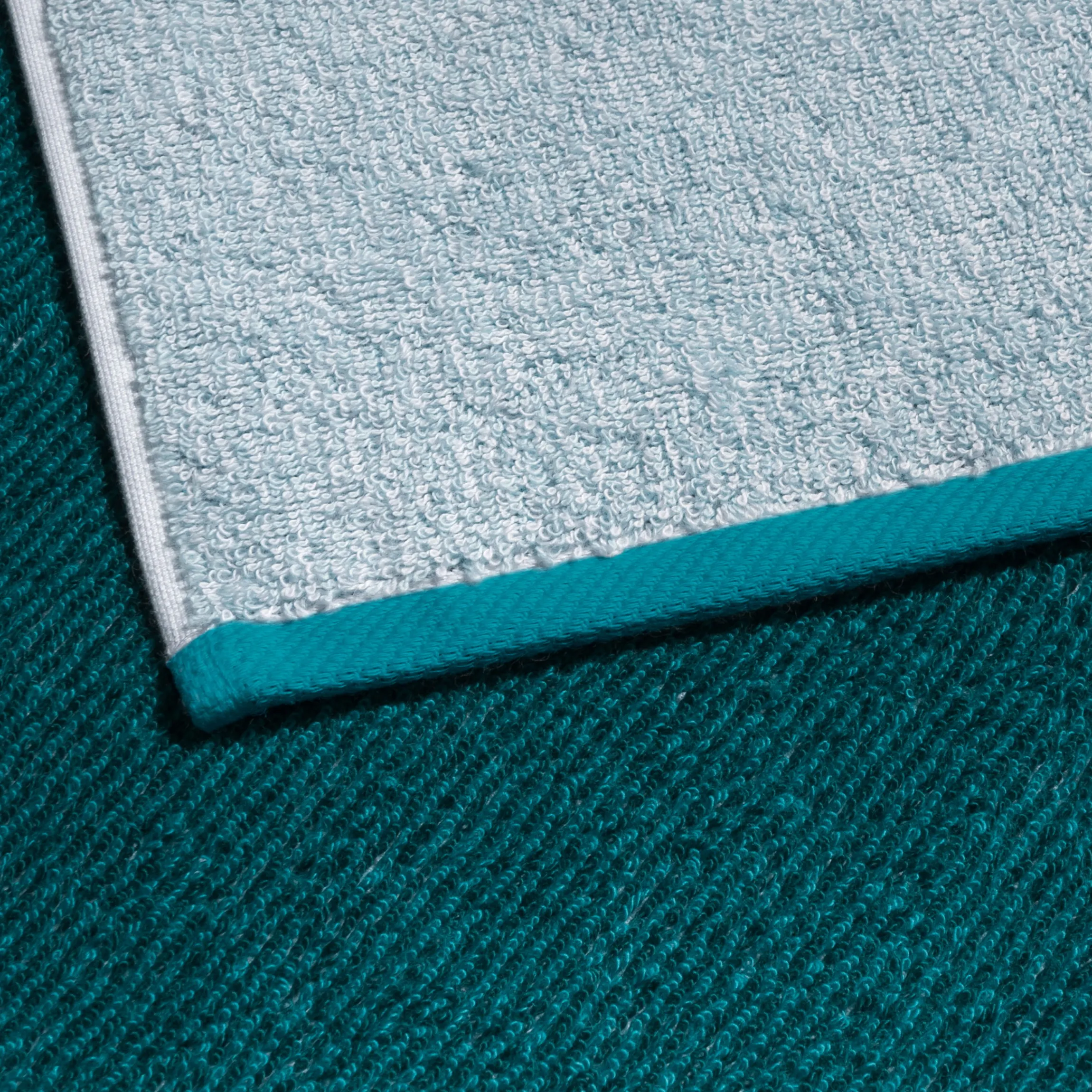 Jedes der vier Dessins ist in den Farben deep lake/ turquoise und lagoon /aqua erhältlich – je ein perfektes Duo.