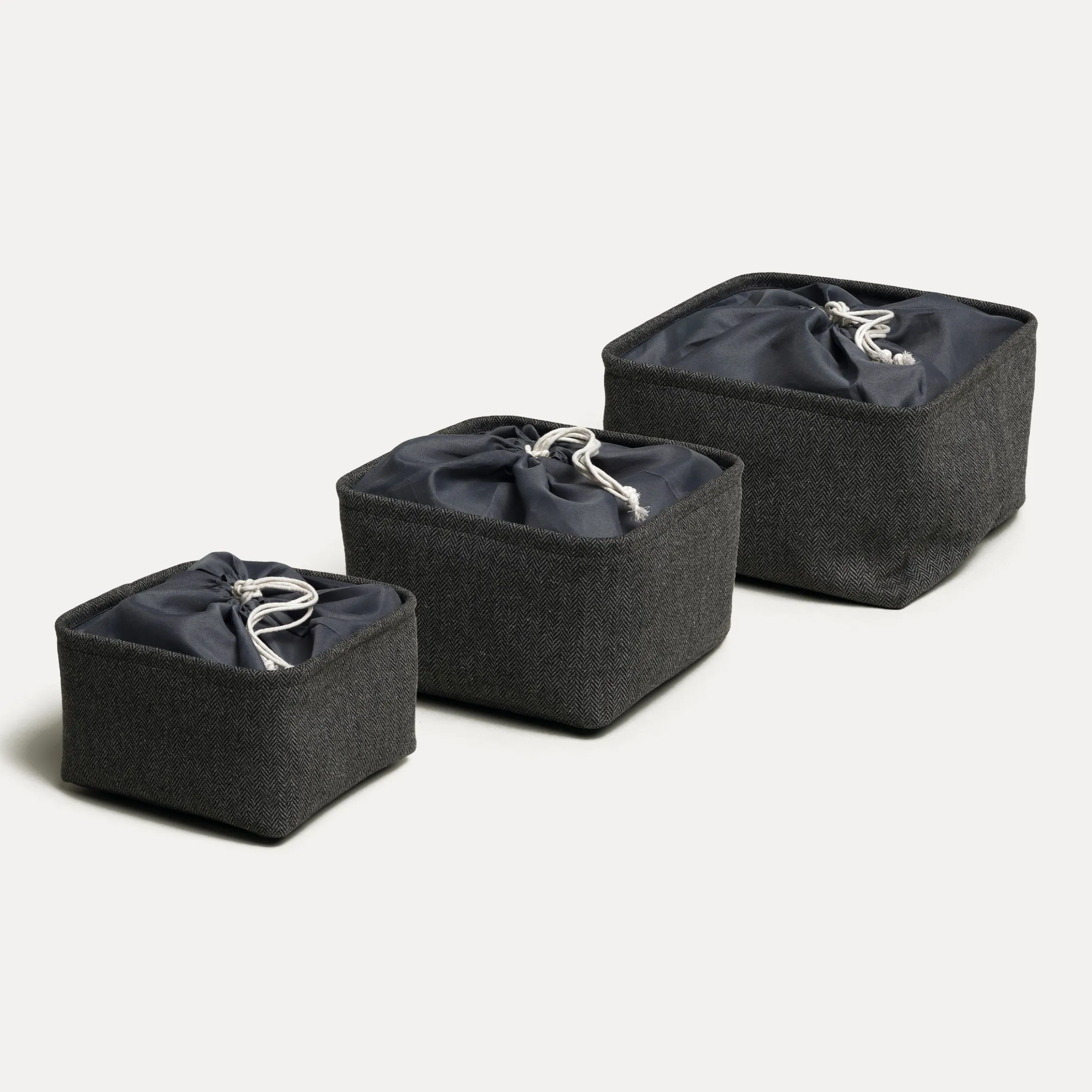 - 3er Set Aufbewahrungskörbe erhältlich in zwei Grautönen